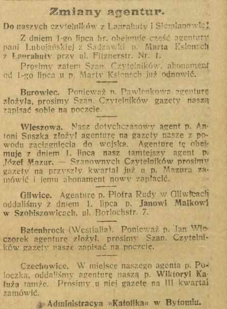 Bytom-Łagiewniki-Bytom (Łagiewniki)-Świerklaniec-A-Nowiny Codzienne-20.05.1919.png